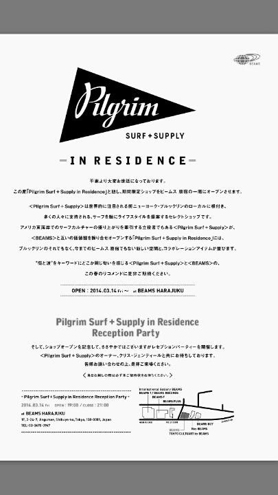 今日からOPENの、BEAMS「Pilgrim Surf+Supply(ピルグリム サーフ+サプライ)」旗艦店のレセプションパーティーにお呼ばれしてきたよ!